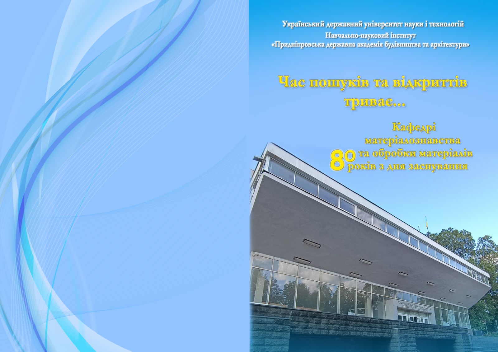 Бібліографічний опис: Час пошуків та відкриттів триває… : Історичний нарис. Вчора та сьогодні : зб. ст. до 80-річчя з дня заснування кафедри матеріалознавства та обробки матеріалів / В. І. Харченко, В. І. Большаков, Т. А. Шпаковська, В. М. Волчук. – Дніпро : ННІ ПДАБА, 2025. – 72 с.